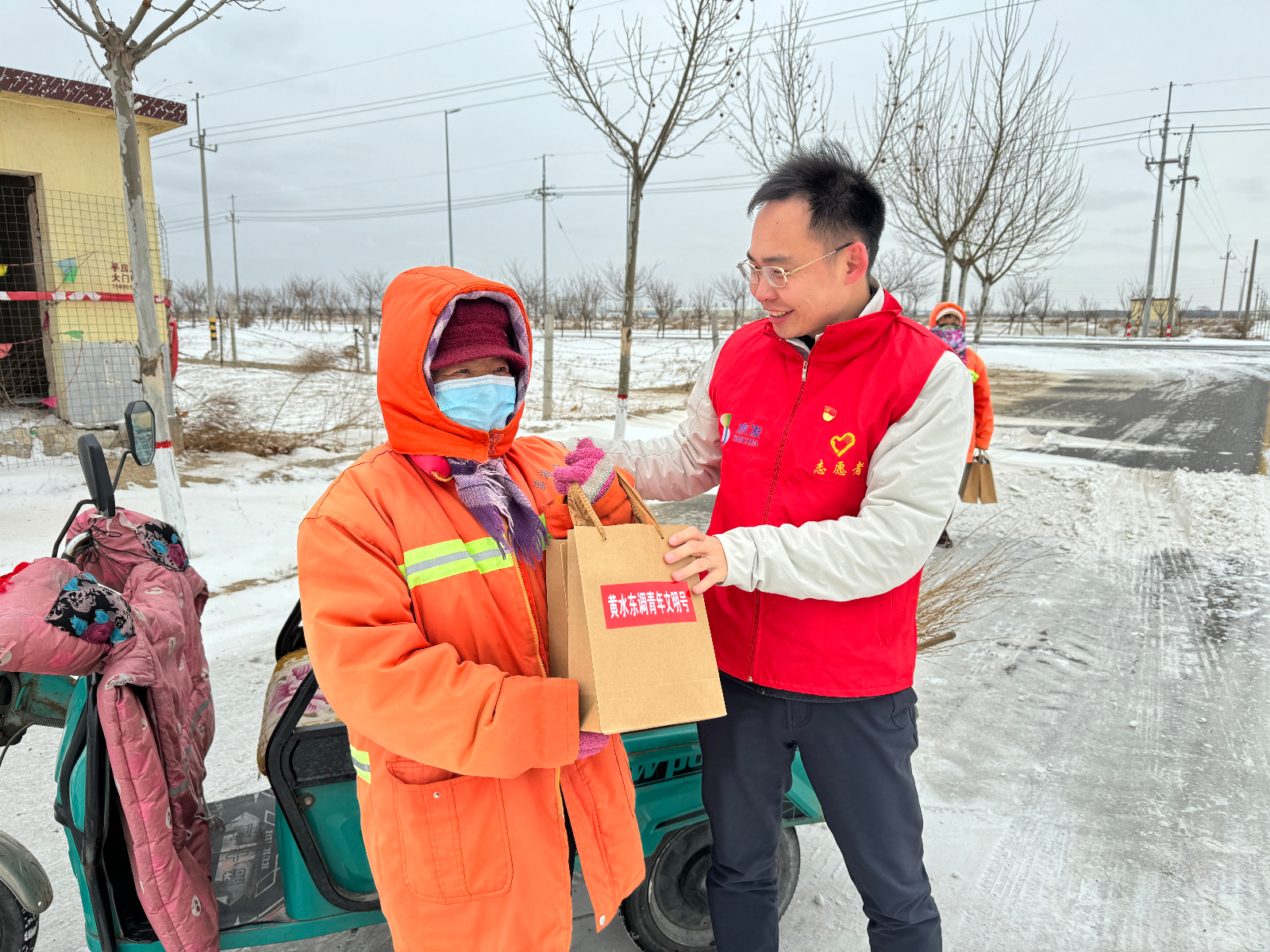 環(huán)衛(wèi)工人是生活中最平凡的人,也是最不可或缺的人。他們每天踏著晨曦去,披星戴月歸,冒酷暑頂嚴(yán)寒,始終戰(zhàn)斗在保障環(huán)境衛(wèi)生工作的第一線。青年志愿者準(zhǔn)備了溫暖的手套和美味元宵,送到環(huán)衛(wèi)工人手中,同時(shí)也送上了元宵節(jié)的祝福,感謝他們對(duì)城市環(huán)境所做出的貢獻(xiàn),希望他們?cè)诔醮褐懈惺艿揭环轀嘏?/span>
