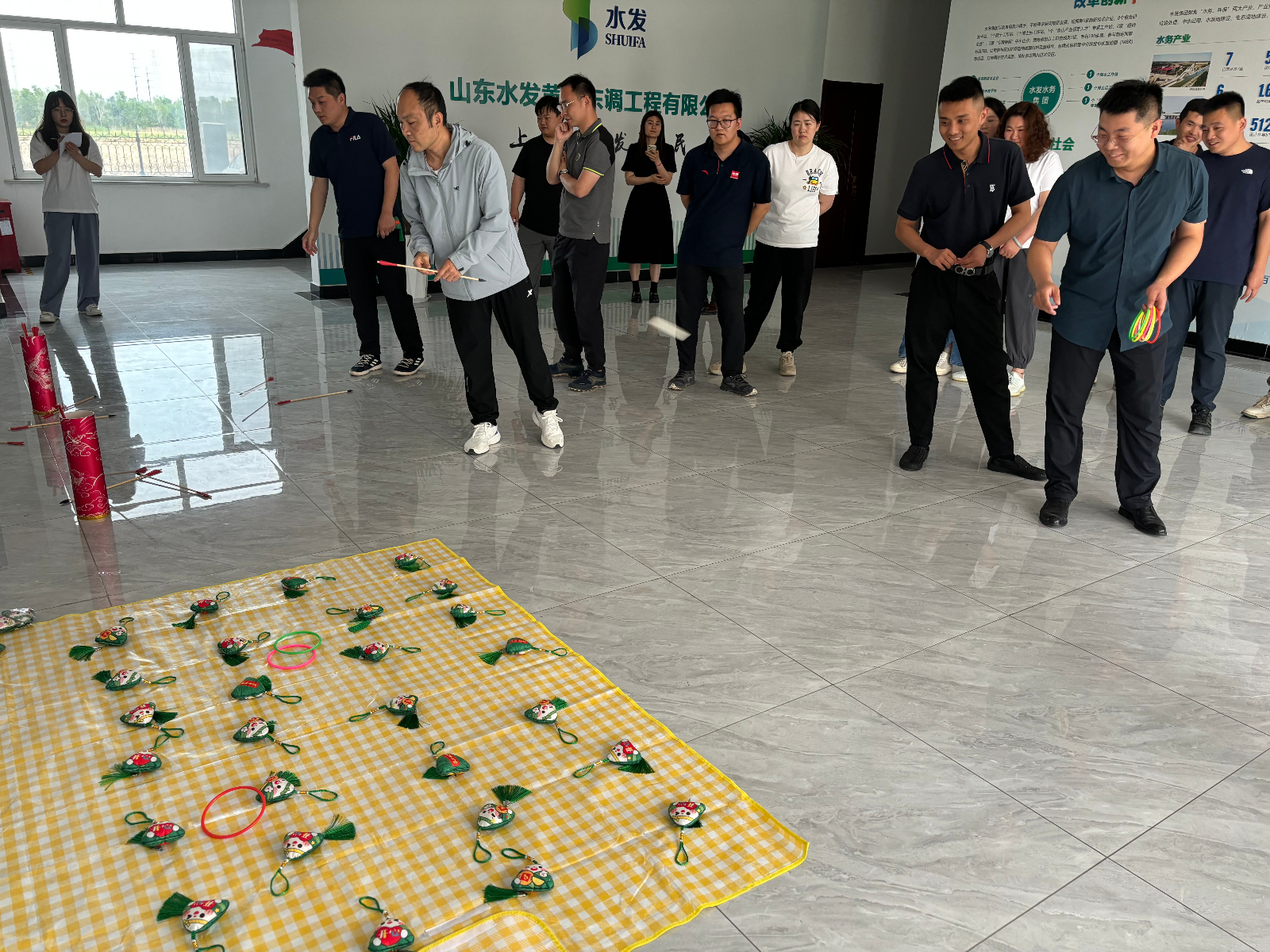 本次端午節(jié)活動分為游戲互動和包粽子環(huán)節(jié)。活動現(xiàn)場歡聲笑語不絕于耳投壺比賽激起了參與者們的熱情,每人八次投壺機會,大家站在規(guī)定的投擲線后,專注投擲,場面熱鬧有趣。緊接著是套粽子比賽,大家摩拳擦掌,爭取每一次套中粽子香包的機會,盡情釋放節(jié)日的喜悅與活力。