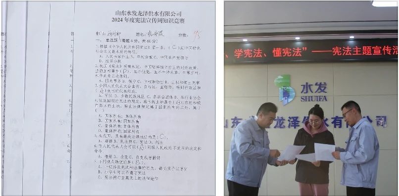 山東水發(fā)龍澤供水有限公司開展“識(shí)憲法、學(xué)憲法、懂憲法”宣傳活動(dòng),活動(dòng)分為普法宣傳和憲法知識(shí)競賽兩部分。