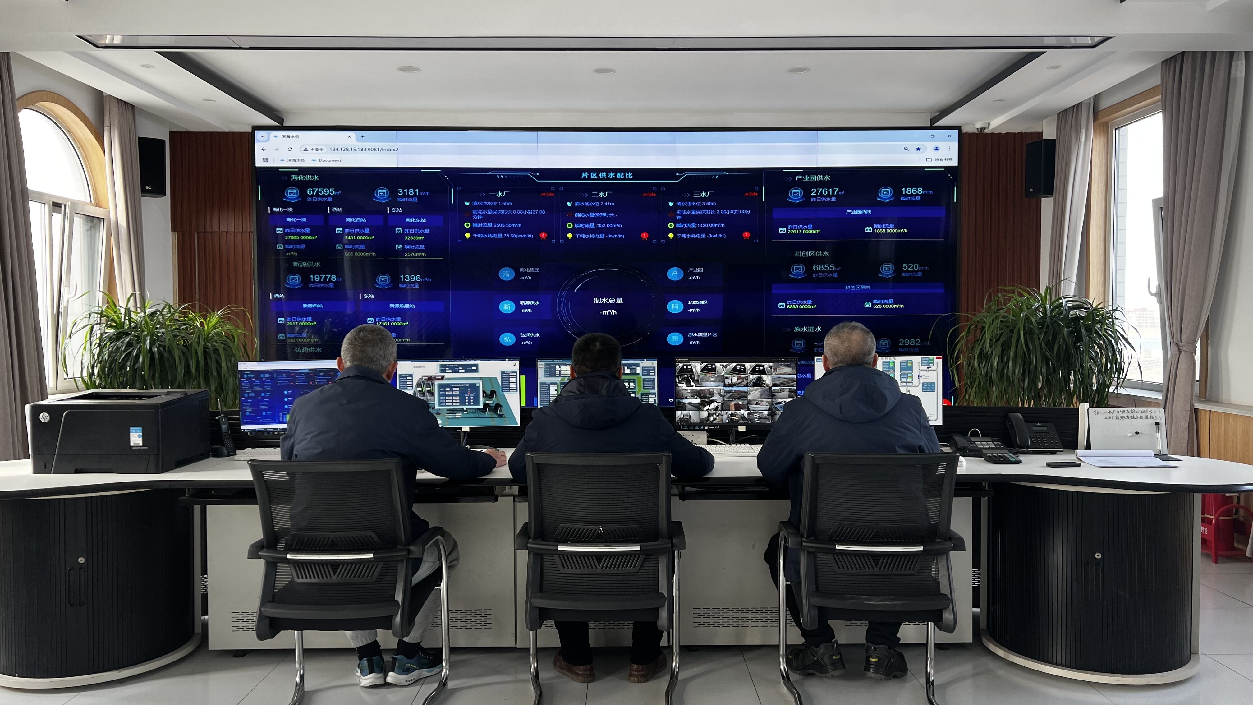 在濰坊水發(fā)供水集團(tuán)智慧水務(wù)平臺監(jiān)控室,員工們正緊盯著屏幕上的數(shù)據(jù),時刻關(guān)注著供水系統(tǒng)的運行狀態(tài)。員工們以飽滿的熱情和堅定的信心開啟新一年的工作,為城市的供水安全貢獻(xiàn)力量。