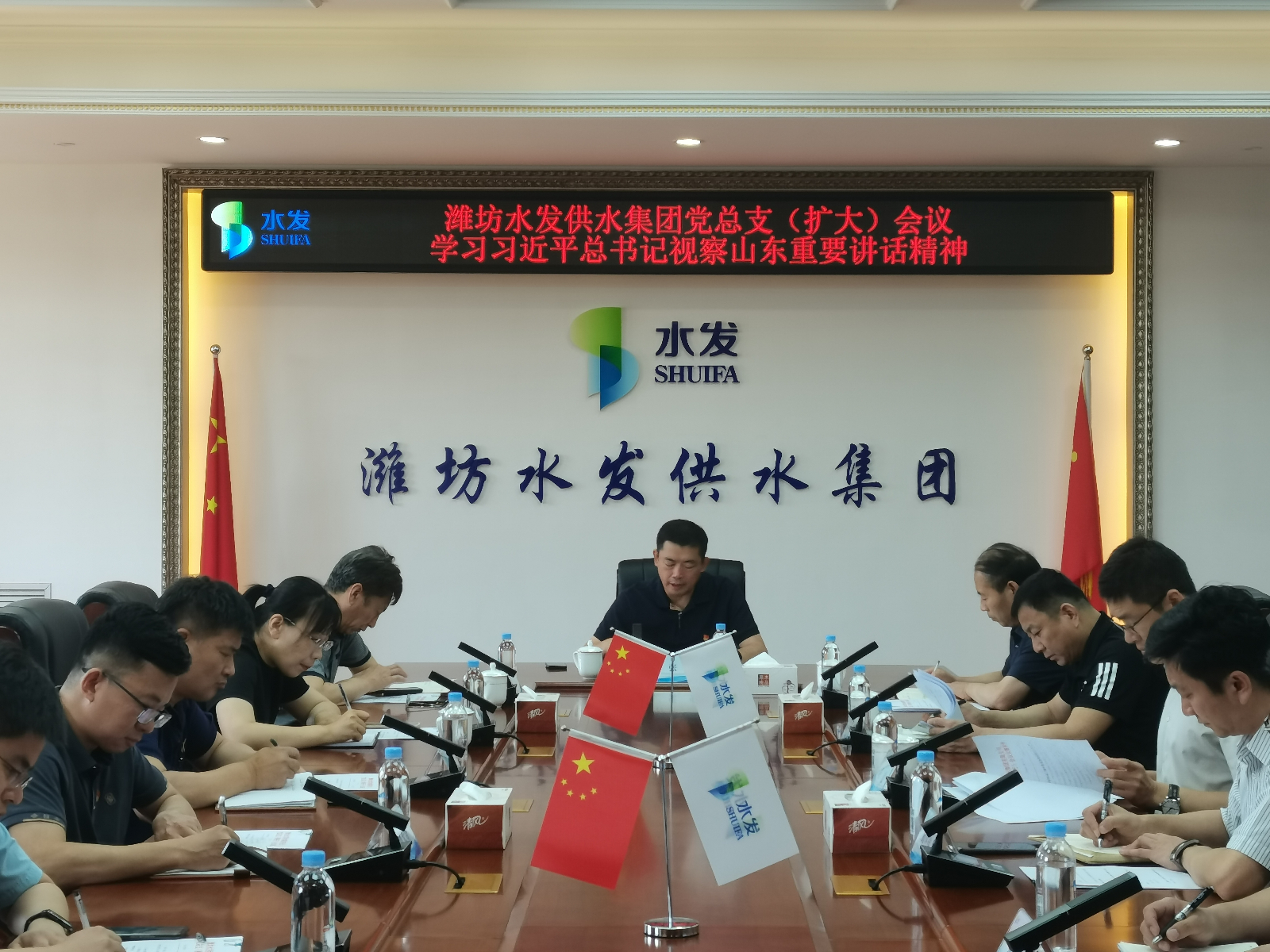 5月28日,濰坊水發(fā)供水集團黨總支召開擴大會議,傳達學習習近平總書記視察山東重要講話重要指示精神,認真落實水發(fā)集團黨委、水發(fā)水控集團黨委理論學習中心組專題會議部署要求,研究貫徹落實意見。供水集團黨總支委員、領導班子、中層以上黨員干部參加會議。